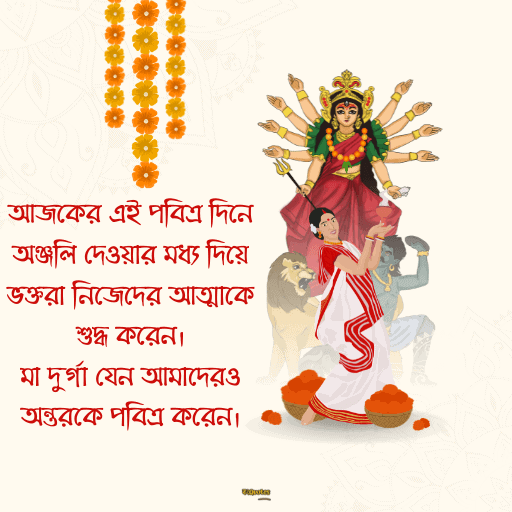 - আজকের এই পবিত্র দিনে অঞ্জলি দেওয়ার মধ্য দিয়ে ভক্তরা নিজেদের আত্মাকে শুদ্ধ করেন। মা দুর্গা যেন আমাদেরও অন্তরকে পবিত্র করেন।